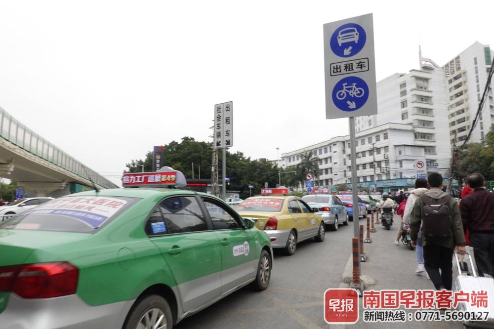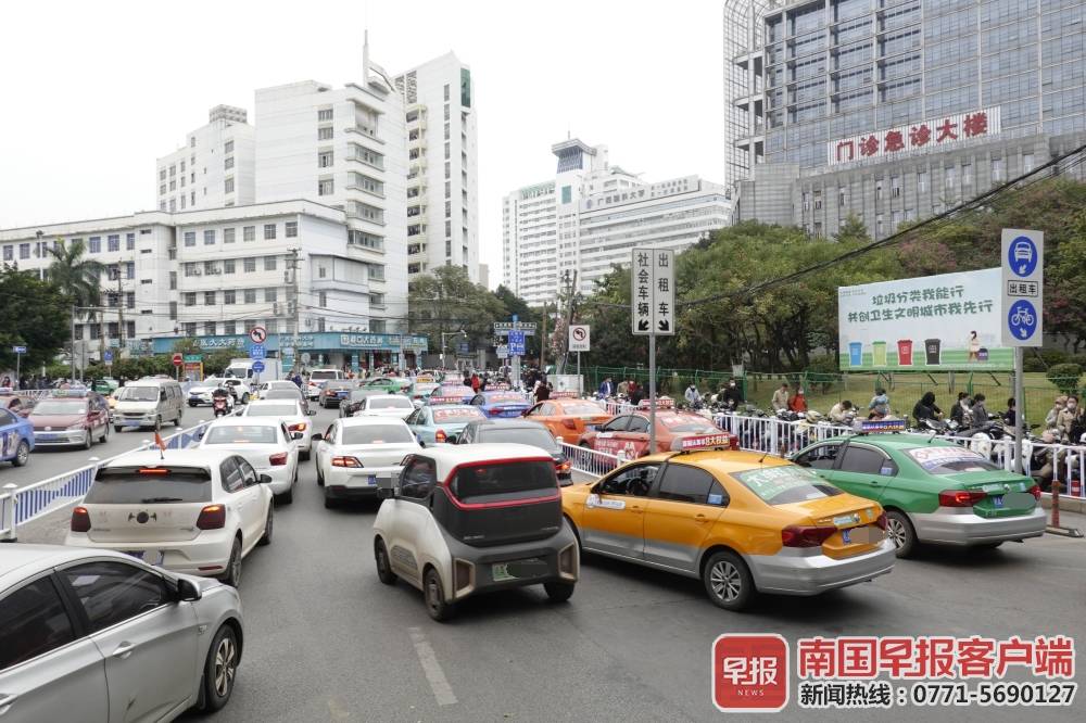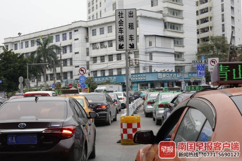 ▲前往广西医科大学第一附属医院的出租车专用道上排满了出租车。南国早报客户端记者苏华/摄