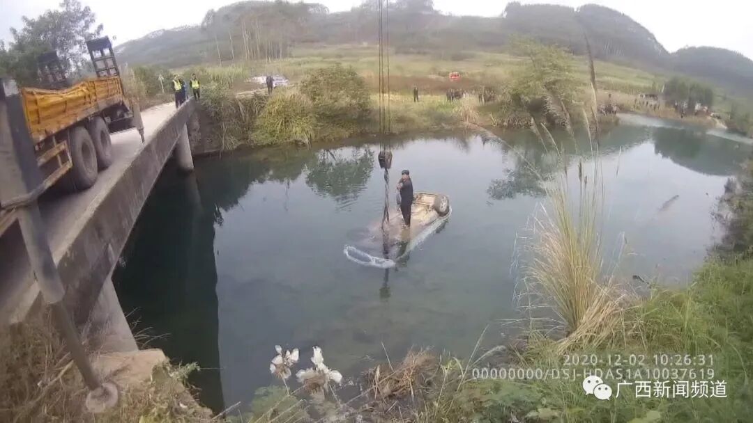 随后,民警调来一辆救援车赶至现场,利用吊钩将车吊上桥头,把遇难的男子从车里抬出来。遇难男子39岁,都安县人。经过现场勘查,发现桥梁护栏较高,初步判定车辆是从桥头坠入河中的。目前,事故原因正在调查中。