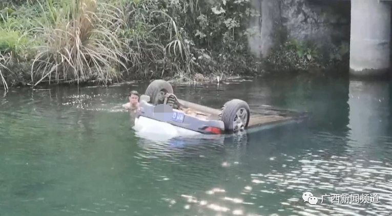 当天早上8时左右,河池市公安局交警支队宜州大队值班室接到报警称:一辆白色私家车四脚朝天漂浮在庆远镇矮山社区黄麻村的河里。民警接到警情后立即赶赴现场。