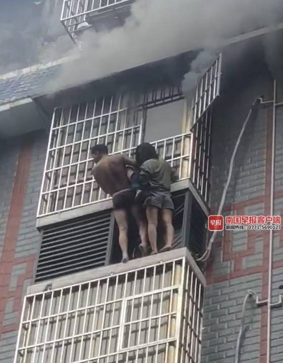 揪心!河池一民房高层起火,被困3人爬到防盗网外全身被熏黑
