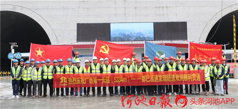 12月9日,经过项目建设者974天的艰苦奋战,广西第一长隧道——发瑞隧道顺利实现双幅贯通,标志着贺州至巴马高速公路(都安至巴马段)(以下简称“都巴高速”)建设进展取得了又一次重大突破,关键控制性工程取得阶段性胜利,朝2021年通车目标迈进了坚实的一步。