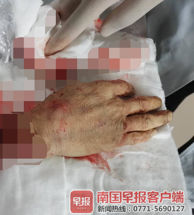 “当时倒地后,整个人都是懵的,也没感觉到很疼。”他说,找到右手后,他下意识直接用左手把断了的右手扯出来,拿着雨衣把手臂包起来。