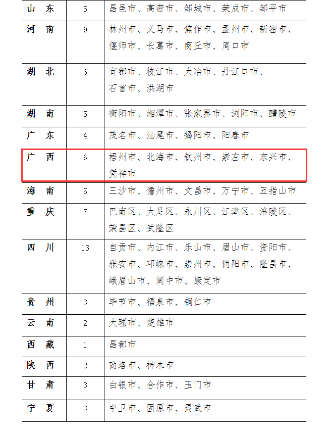 12月10日,国家卫健委规划发展与信息化司发布《全国爱卫办关于拟命名国家卫生城市(区)名单的公示》,广西共有6地上榜!分别是:梧州市、北海市、钦州市、崇左市、东兴市和凭祥市。