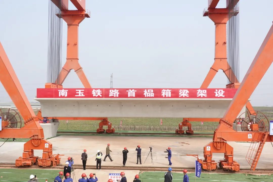 据了解,南玉铁路项目全线共建设7座制梁场,承担3593孔箱梁生产及架设任务,目前已有3座制梁场投产使用,其余4座正有序建设中。此次南玉铁路项目首榀箱梁架设成功,标志着南玉铁路项目建设由下部结构施工转为梁体架设的新阶段。