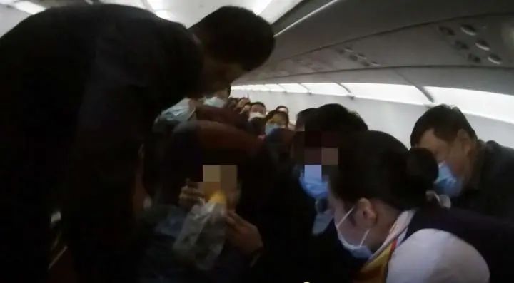 座位号为34J的旅客张先生向闻讯赶来的乘务员表示,自己感到胸闷、头冒冷汗、视力模糊。乘务员简单询问旅客情况和以往病史后,立即通知乘务长启动机上急救程序,由乘务长郭瑶、刘安琪、李树奇、汤彩红组成急救小组,并分工保障飞机配载平衡。乘务长第一时间通知机长李鲁,并通过广播寻找医生旅客协助。