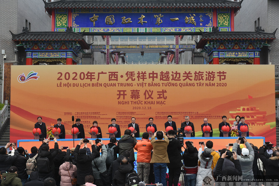 广西新闻网南宁12月18日讯(全媒体报道组)一抹红彩,彰显边关活力,独具凭祥魅力。12月18日,以“聚焦自贸试验区,共谋产业新发展”为主题的2020年广西·凭祥中越边关旅游节开幕式在凭祥市红木文博城举行。
