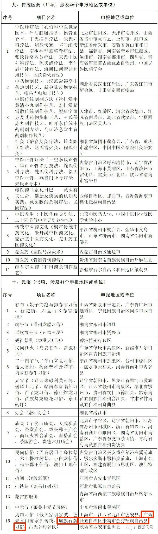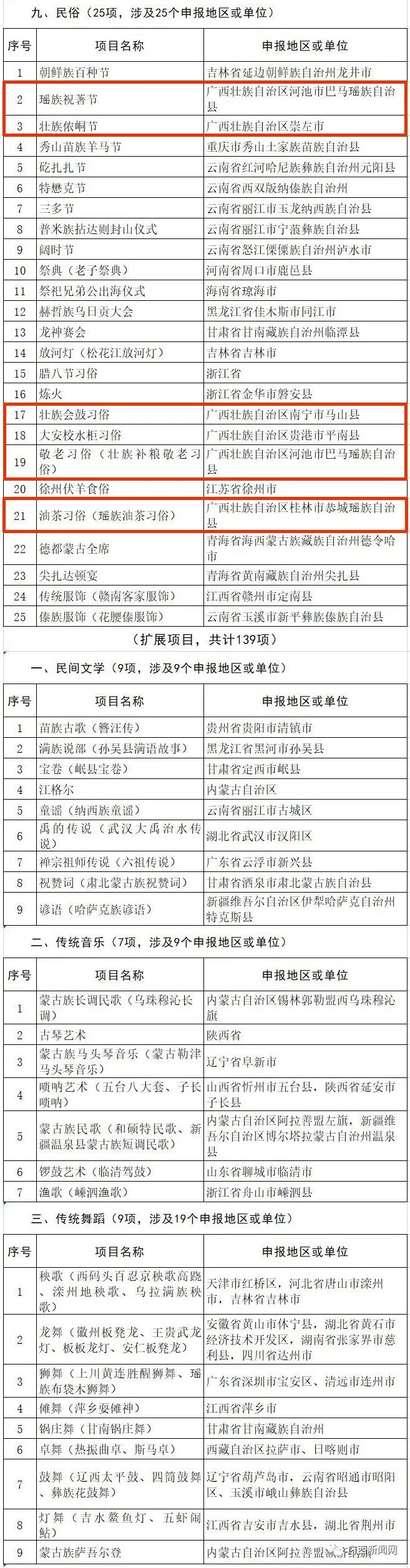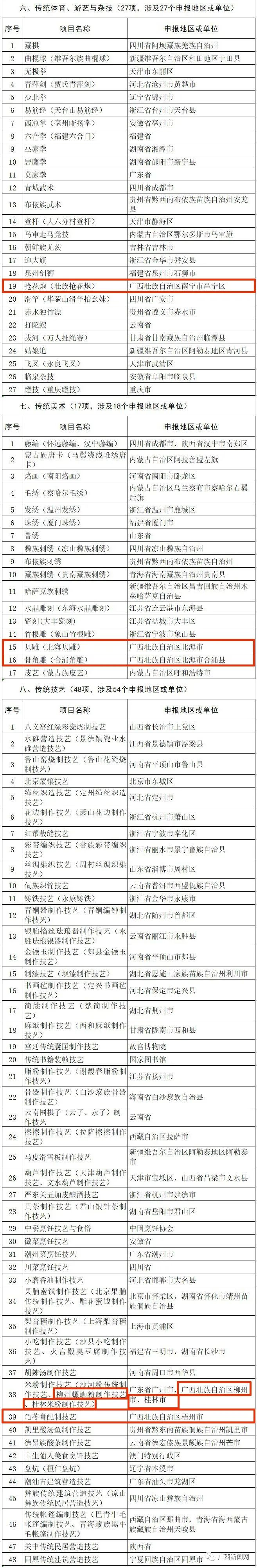 其中,广西新列入17项,扩展1项。
