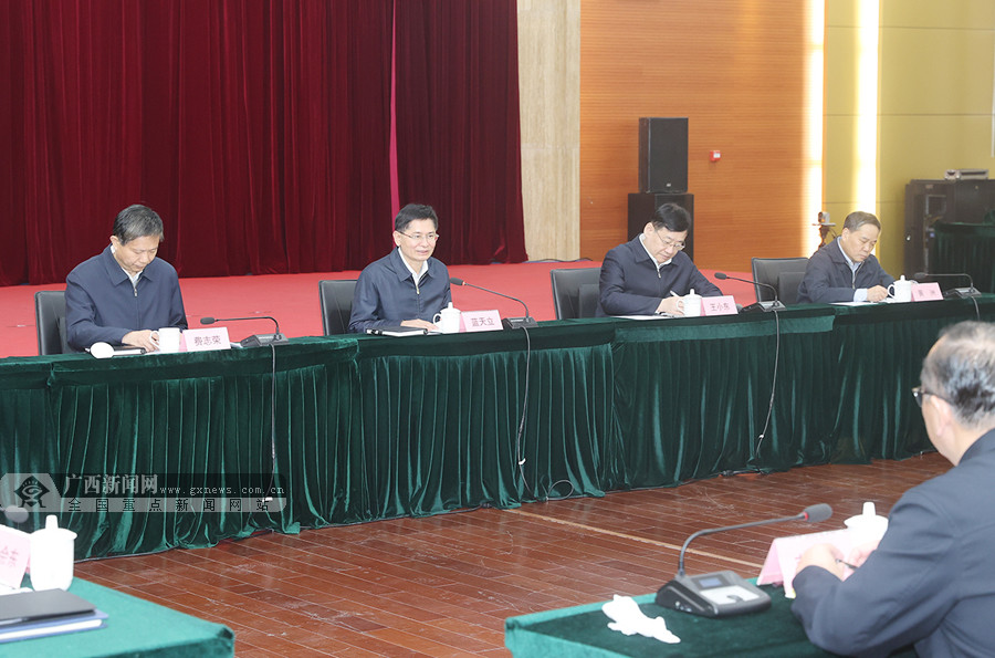 12月25日,自治区代主席蓝天立在广西南南铝加工有限公司主持召开座谈会,听取企业发展汇报。记者 梁凯昌摄