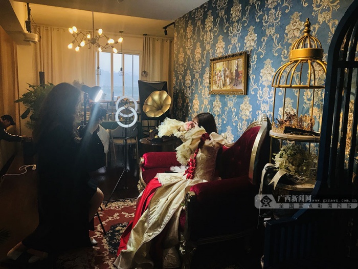 广西新闻网南宁12月25日讯(记者 韦幸文 罗珊珊 实习生 覃芊芊 李婷)近年来,各大社交媒体上涌现出不少适合拍照的景点,吸引了许多爱美的年轻人前去打卡拍照。但也有一些年轻人,有着对美更多的追求,希望拥有与众不同的自拍背景、造型,于是,一批集换装、场景为一体的付费换装自拍馆应运而生。同样,在南宁也出现了不少可提供场景、服装、道具、拍照设备等服务的换装自拍馆,成为年轻人打卡拍照的新去处。这些换装自拍馆为何越来越受到年轻人追捧?与影楼、拍照景点又有何不同之处?对此,记者走访了南宁市多家换装自拍馆,以及采访了多位喜欢光顾换装自拍馆的顾客。
