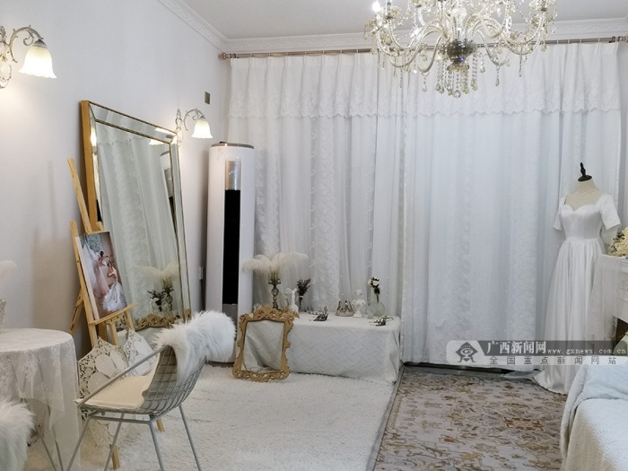 不少换装自拍馆的出现,源于店主本身也是一个热爱拍照的人。位于南宁市青秀区香榭里花园小区里的一家换装自拍馆,店长庞女士本职工作就是一名时尚博主兼模特,出于对拍照的喜爱以及方便本职工作的场景需求,于是她利用业余时间开起了这家换装自拍馆。“其实一开始我是做民宿的,当时因为民宿的设计风格很清新、很特别,在南宁也比较少见,就吸引了许多市民前来打卡拍照。后来来的人越来越多,我就干脆把民宿改造成了专门提供拍照场景的自拍馆。”