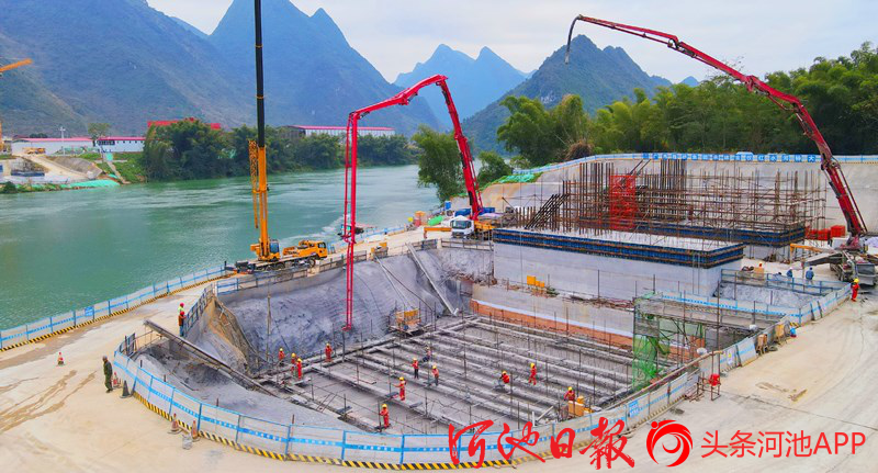△金钗红水河特大桥拱座浇筑施工现场。