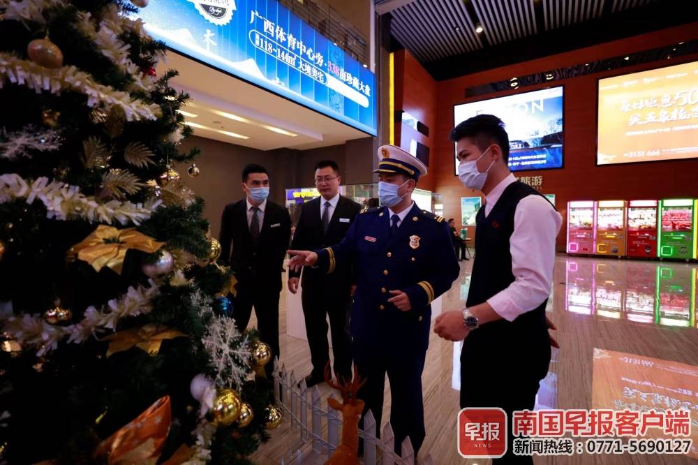 ▲12月24日、25日晚,检查组深入大型商业综合体及其内设的电影院、歌舞娱乐等夜间营业场所,开展消防安全集中夜查行动。南宁消防供图
