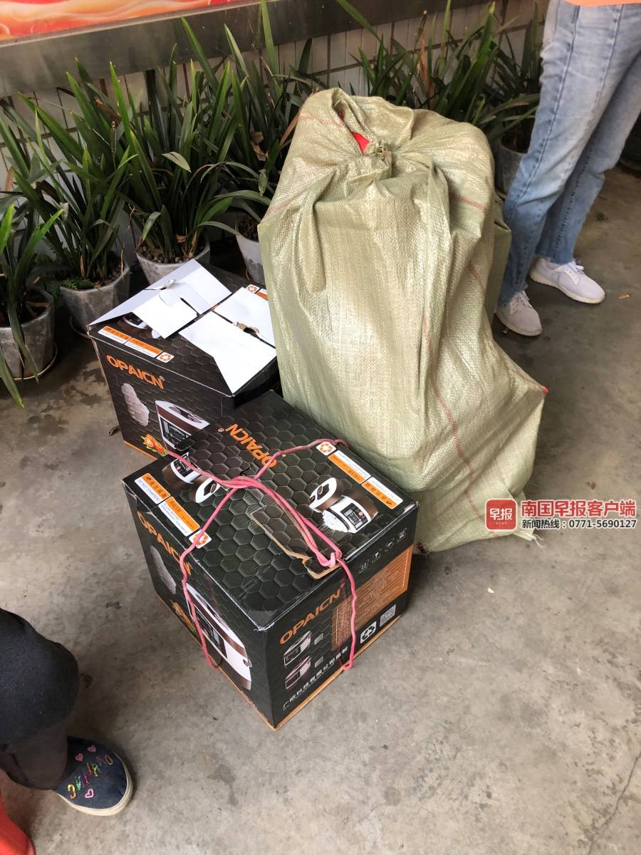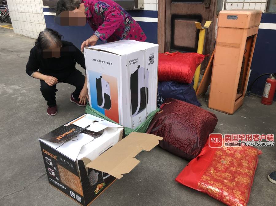 12月28日下午,南国早报客户端记者看到,涉事老人将部分商品堆放在长堽派出所门口,称这些商品疑似以次充好。