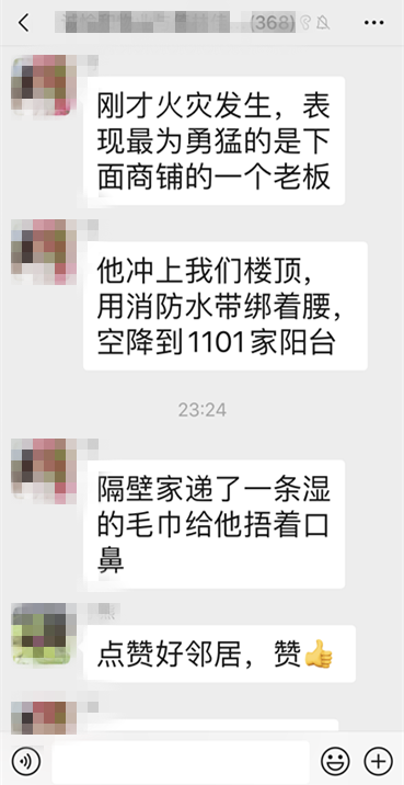 他一边用湿毛巾捂住口鼻,一边手提灭火器进入着火室内,努力控制着火势的蔓延。因为他的“英勇逆行”,把此次火灾损失控制到最小。附近邻居纷纷为他点赞!