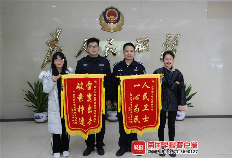 2021年1月4日下午,该公司代表将两面印有“雷霆出击,破案神速”、“人民卫士,一心为民”字样的锦旗送到高新分局刑侦大队民警手中,感谢民警为公司追回5.2万元被骗钱款。