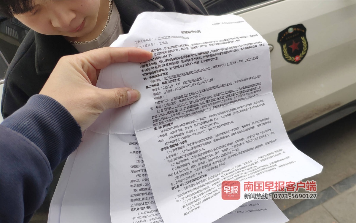 ▲租户出示与该公司签订的租赁合同。南国早报记者何定坚摄