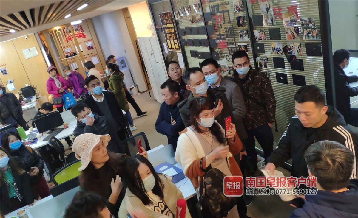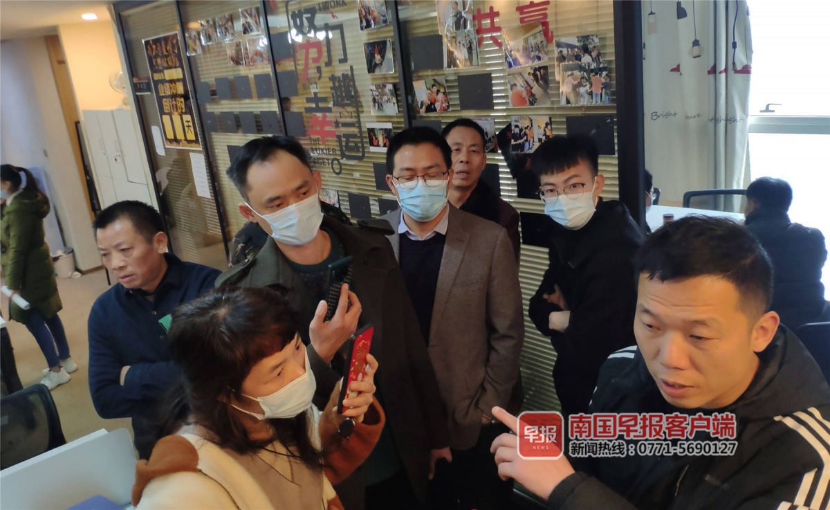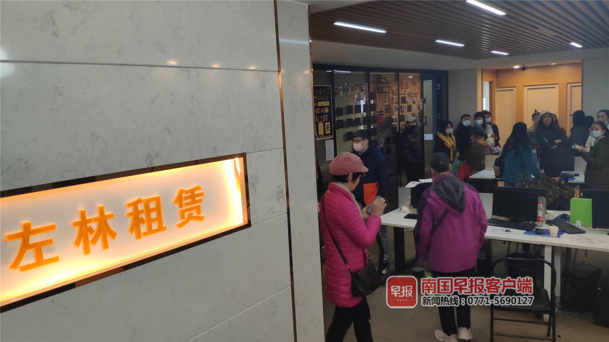 1月6日上午,一批房东和租客来到迈左林公司位于青秀万达的办公点,希望对方能尽快就房租拖延支付问题拿出解决方案。租客曹先生告诉南国早报客户端记者,去年9月他通过迈左林公司在西乡塘区租下一套三房两厅的房子。