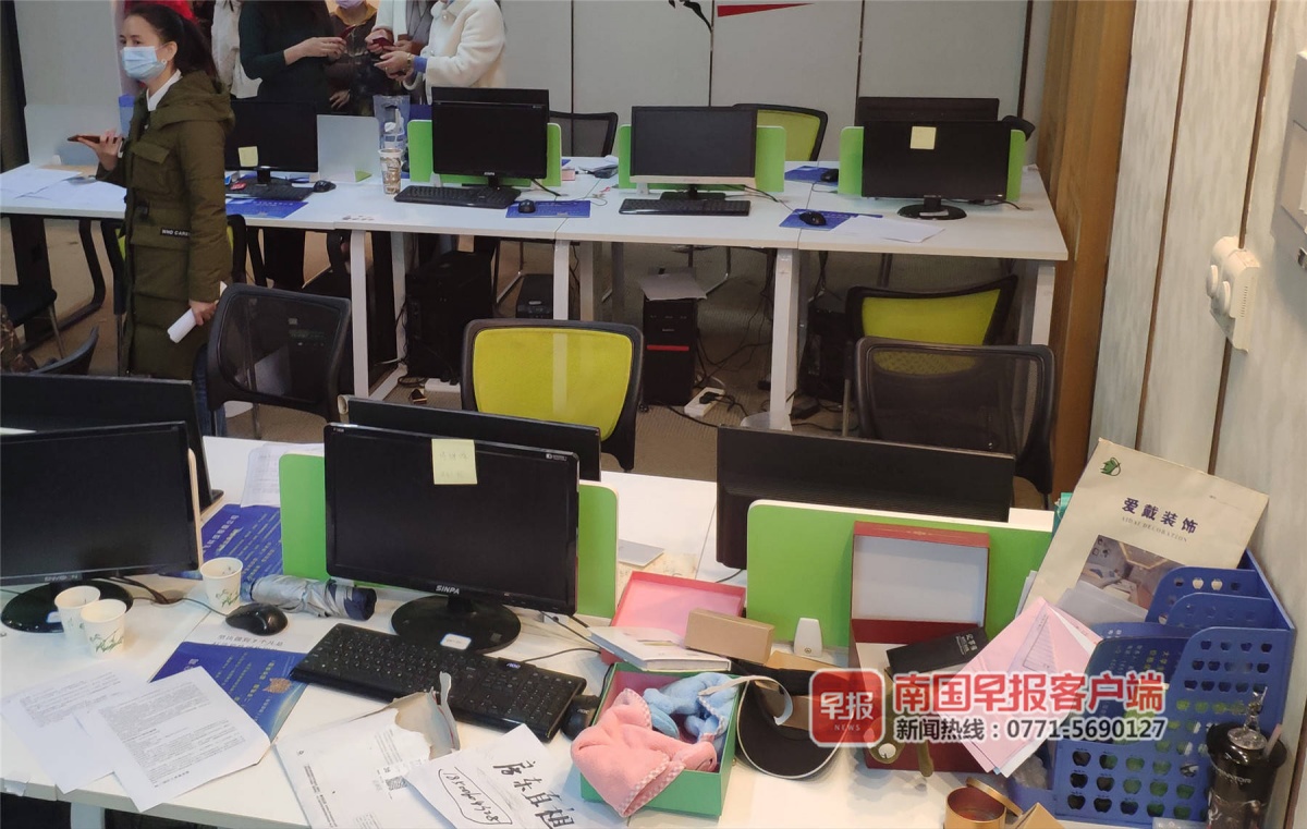 ▲涉事公司办公桌一片狼藉。南国早报记者何定坚摄