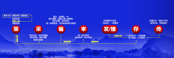 平台集成AI生成工具,提供一整套“策、采、编、审、发”的媒体智能生产能力,实现了数智化生产流程,极大地提升了新闻生产效率和传播效果。