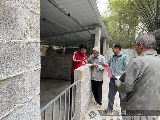 村民们在驻村干部的协调下分配牛棚。广西新闻网通讯员 赵志会 摄