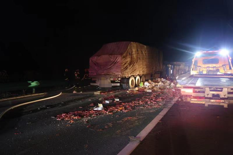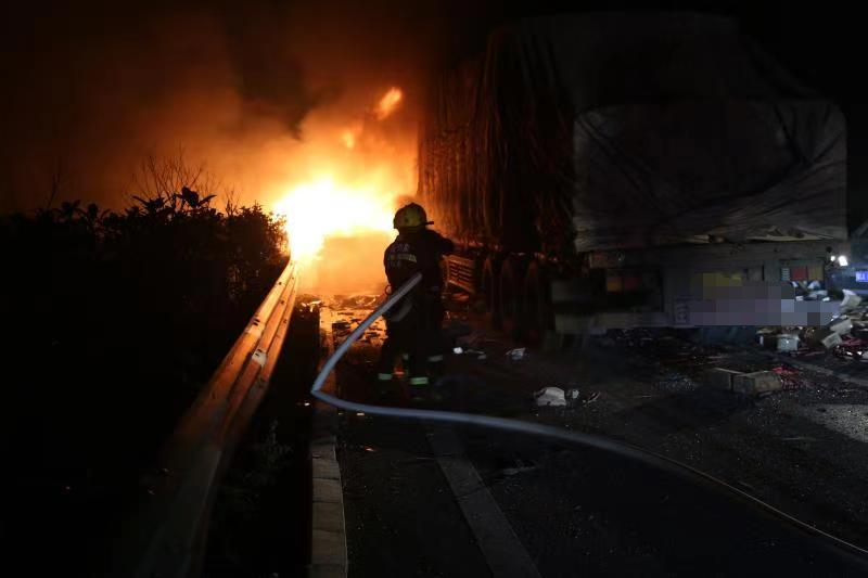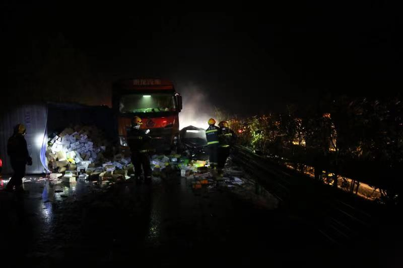 指挥员立即下令出两支水枪进行扑救,经过30分钟的紧张救援,成功处置完毕,现场移交交警部门处置。