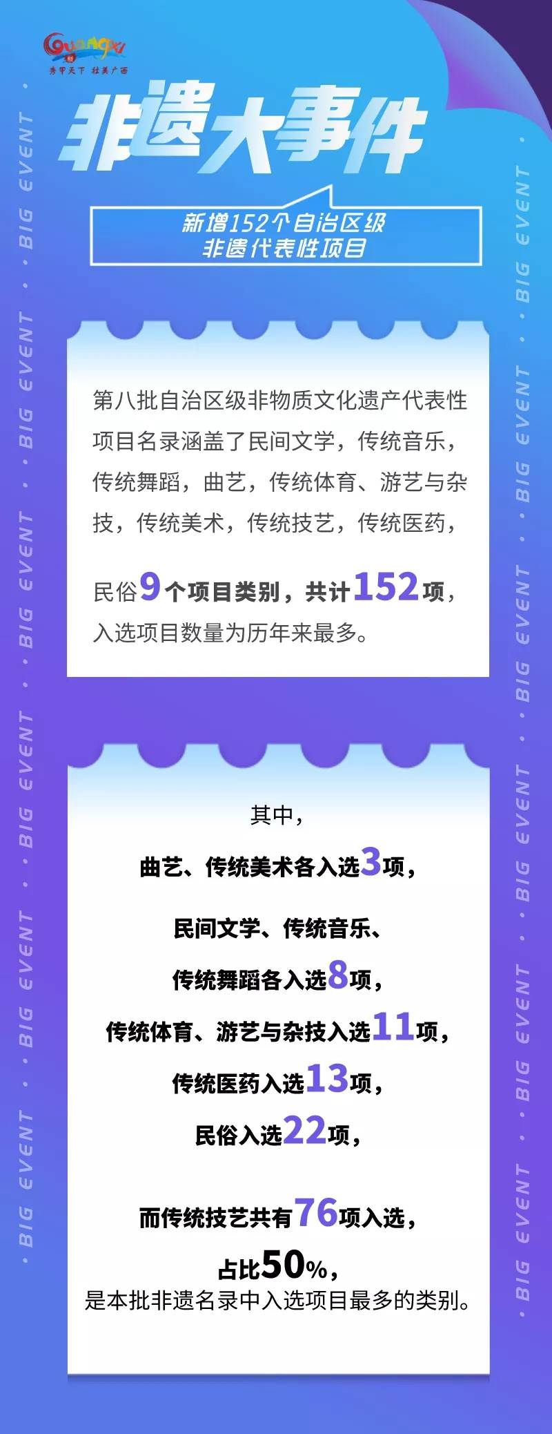 日前,经自治区人民政府批准、自治区文化和旅游厅确定的第八批自治区级非物质文化遗产代表性项目名录公布。1月8日,南国早报客户端记者从自治区文化和旅游厅了解到,本批次共152项入选名录,为广西历年最多。