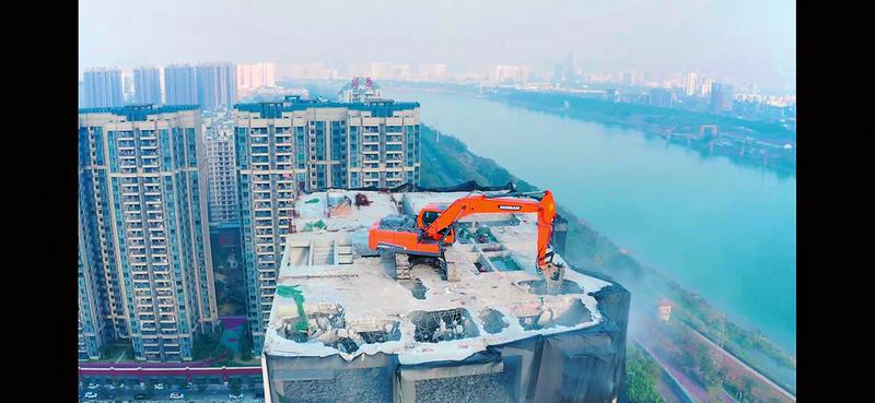 南宁晚报讯(记者 黎兆齐 通讯员 黄宏杰 邓立祖)最近,一台大型钩机“空降”南宁市某超高层楼顶拆除作业的视频火了一把。视频显示,被降层拆除的高楼位于江南区中兴桥南西侧,项目为江湾盛世。那么,钩机如何上到楼顶?为何在上面拆除?拆除属于什么情况?带着这些疑问,昨日记者向辖区江南区政府部门了解情况。