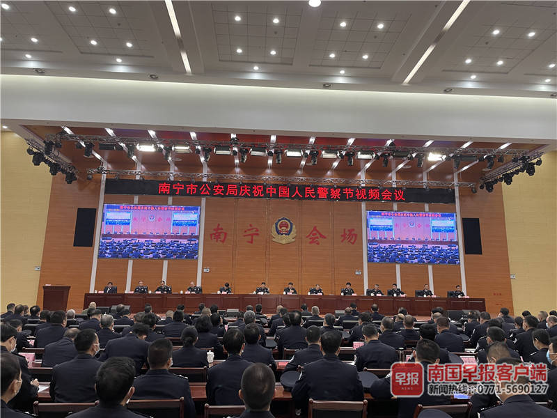▲南宁市公安局举行庆祝中国人民警察节视频会议,表彰榜样集体和榜样人物。