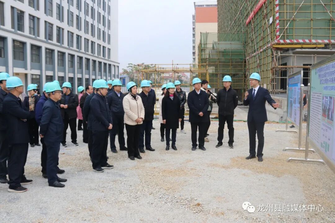 在新建中医医院项目点,副县长杨星介绍了我县医疗卫生项目、紧密型县域医共体建设模式等情况。据了解,龙州县中医医院整体搬迁项目总投资约5.57亿元,项目按三甲医院标准规划建设,总用地面积约101亩,总建筑面积13.2万平方米,病床700床。项目建成后不仅服务龙州县人民群众,还可以辐射到东盟友邻,通过医疗服务、医学交流等,架起中国与东盟国家友好交往的桥梁。