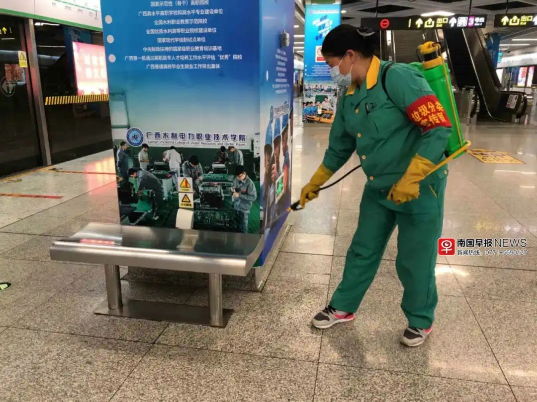 据南宁轨道交通集团运营分公司工作人员介绍,南宁地铁已加强通风消毒措施,车站实行最大程度的新风引入,提高车站换气次数,每日对车站新风引入源、车站公共区域、车站设备区等进行全方位消毒杀菌。