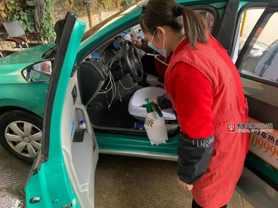 据悉,南宁市所有巡游车企业已采购医用一次性防护口罩13万个,并准备酒精、消毒液、消毒喷壶等物品,分发到驾驶员手中,落实“座套一天一换、每客一消毒”。并在各巡游车办公场所重新开放11处消毒点,为回场车辆清洗、全面消杀。