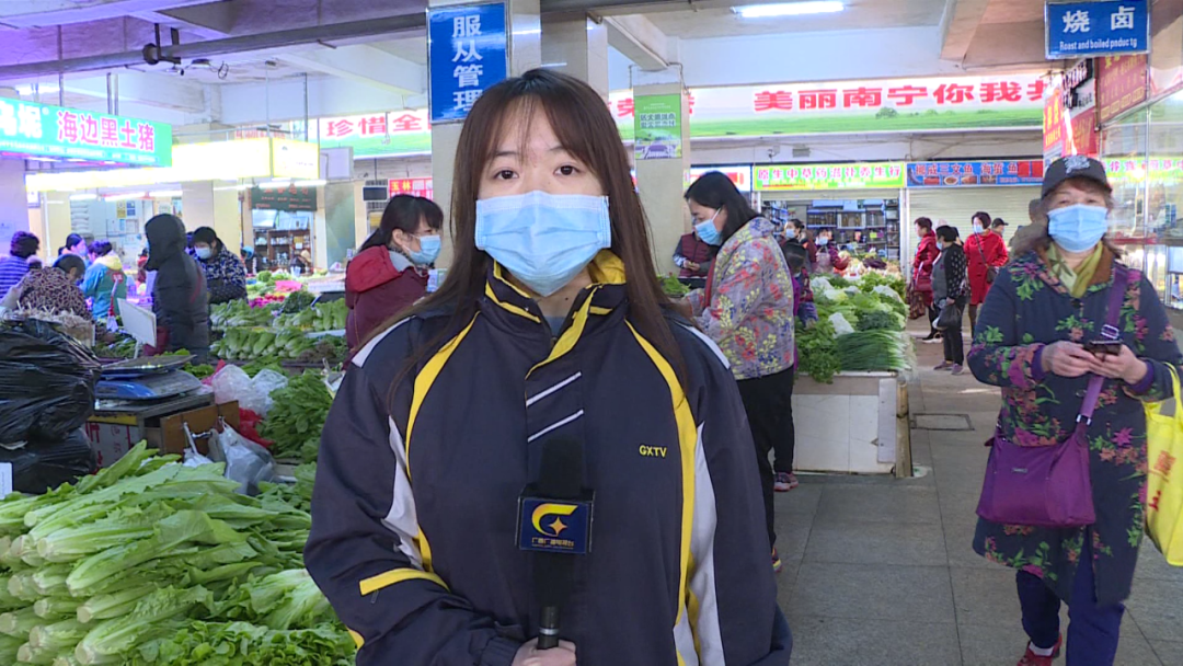 记者 黄意文:我现在是在南宁市青秀区的麻村菜市,在现场我们可以看到大部分前来买菜的市民都已经佩戴上了口罩,但是还有少部分年纪较大的市民是没有戴上口罩的。而这里所有正在经营的商户都已经严格按照市场方的要求佩戴上了口罩。