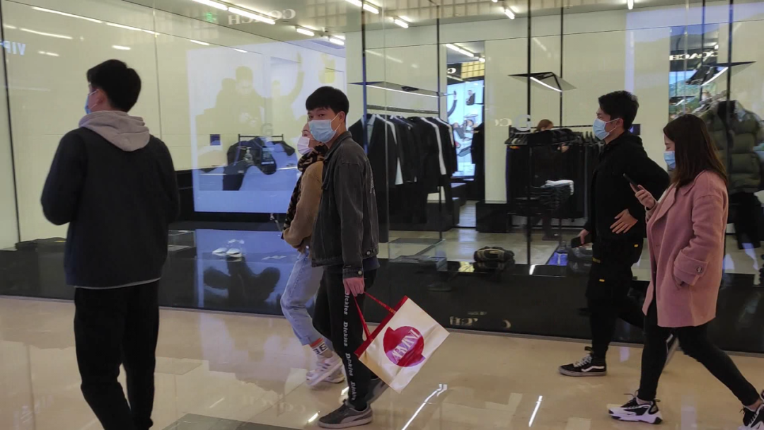 在万象城的停车场入口,车上的所有人员都必须测量体温;在商场1楼和负一楼层的商场入口也设有1至2名值守人员,并安装有语音提示设备,提醒每位顾客必须佩戴口罩、出示健康码和测量体温才能入内。在商场内部,记者看到,所有市民都按要求规范佩戴着口罩,没有出现进入商场内部后再摘掉口罩的行为。