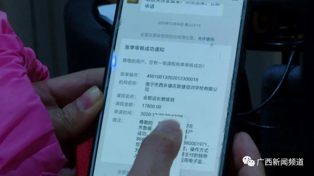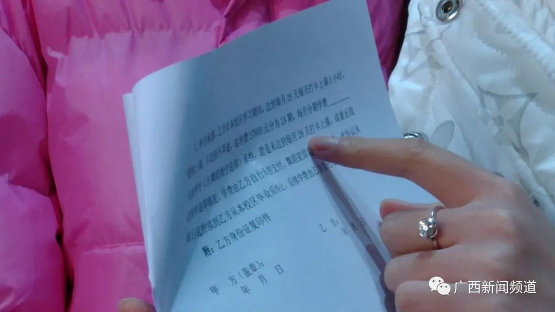南宁市西乡塘区斯捷培训学校有限公司负责人 黄丽嫣:合同里面我们有说过,她的总学费是27800分为24期,然后每一期的学费应该是在1000多这样子,然后的话就是由我们去承担的,但前提是她要按照我们的要求去上课。