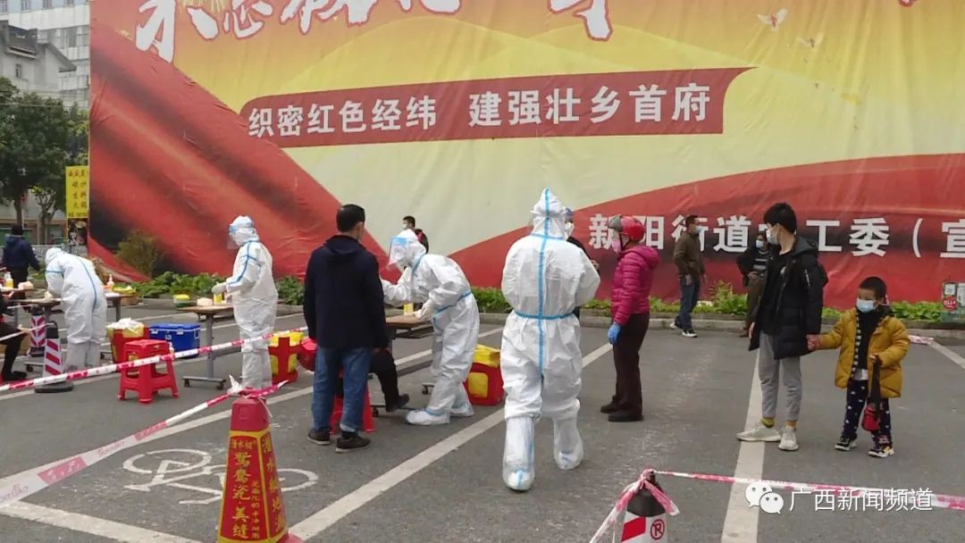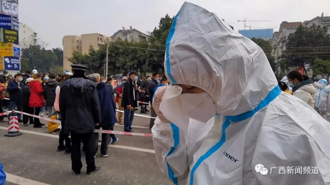 南宁市西乡塘区新阳街道办工作人员 葛嘉卿:他们从凌晨一点钟已经坚持到现在了,现在的话,因为抽不出人手出来,我们过来,临时过来支援一下。