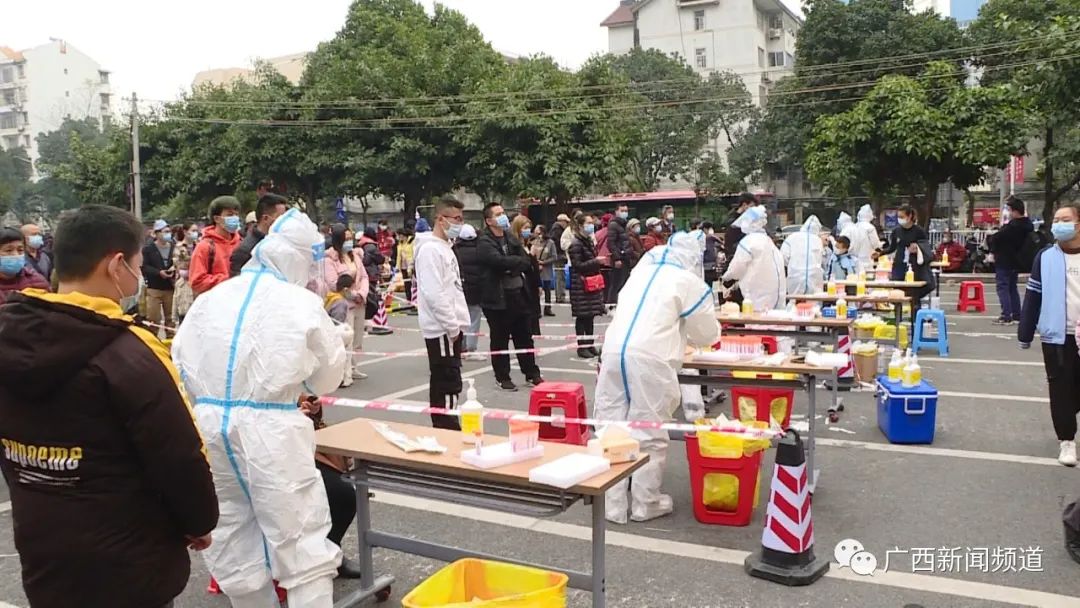 在接到核酸检测任务后,广西中医药大学附属瑞康医院抽调100多名医护骨干负责新阳街道三个核酸检测采样点的采样工作。