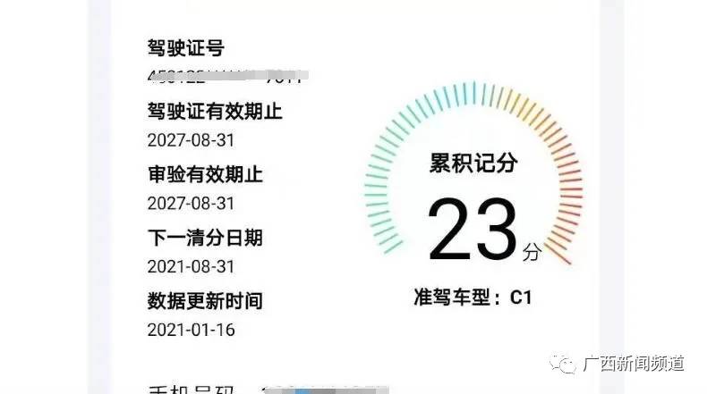 回到南宁后,李先生登陆交管12123软件一查,发现自己的驾驶证被扣了23分。为了拿回驾驶证,他得重新学习科目一。