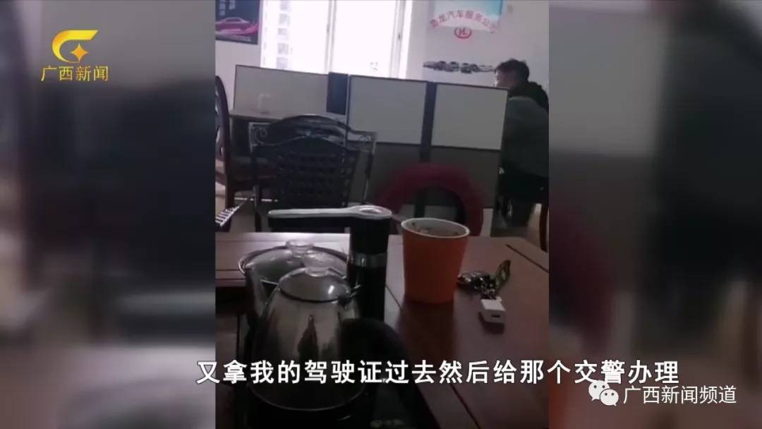 南宁市民 李先生:演习然后他给我一张纸条,写那个车牌号码,还有一本行驶证,又拿我的驾驶证过去然后给那个交警办理。