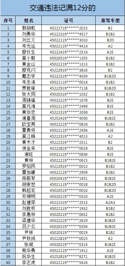 交通违法记满12分(共582名)