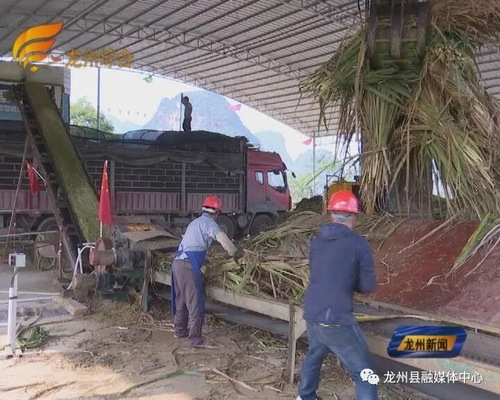 龙州县战地牧业有限公司负责人、亮剑合作社理事长 韦海忠:我们这个点带动的贫困户,我统计了一下大概有406个。(我们公司)有三个点在加工,其中一个是在金龙,(另外两个是在)锦阁跟上龙。我们去年营业额是25000多吨,产值有764万,能够给农民带去四百多万的增收了。我们下一步计划,今年(蔗叶加工)要达到五万吨。