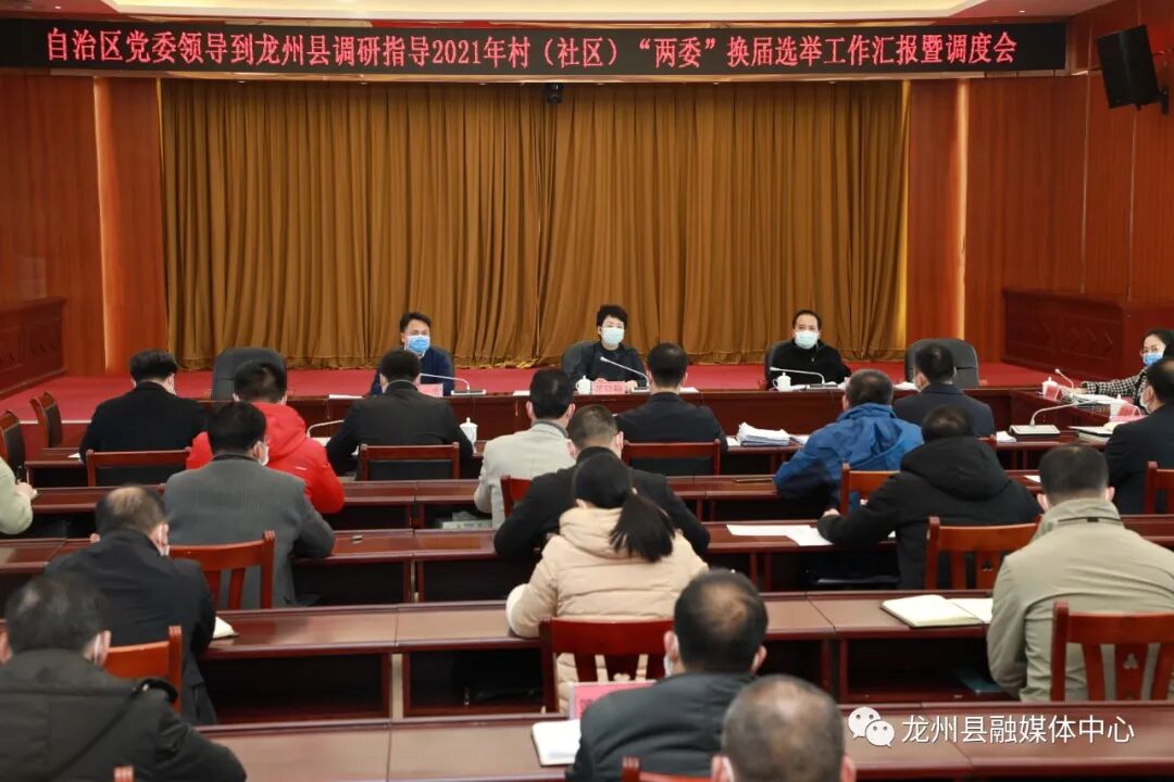 下午,范晓莉主持召开龙州县2021年村(社区)“两委”换届选举工作汇报会(调度会)。县委副书记、副县长、代县长冯波汇报我县2021年村(社区)“两委”换届选举工作情况;12个乡镇党委书记分别汇报工作中遇到的困难和问题。