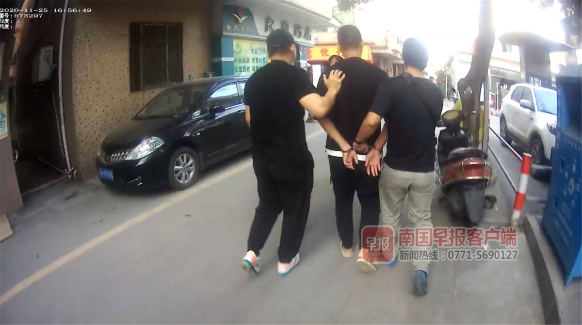 ▲嫌疑人陈某被铁路警方抓捕。执法记录仪截图