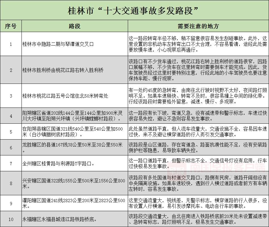 司机大佬速Get!桂林市“十大交通事故多发路段”公布