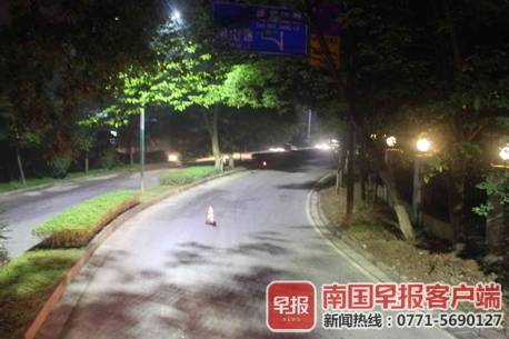 ▲桃花江路五号公馆往北50米转弯处。桂林交警供图