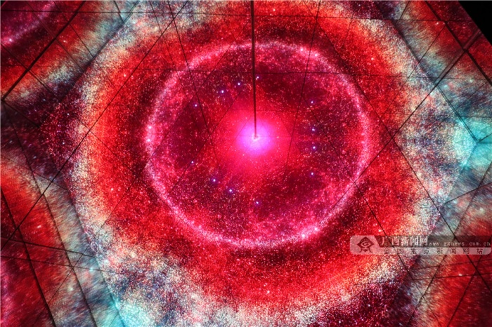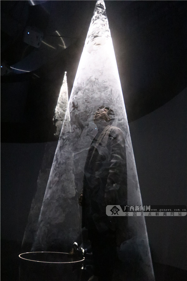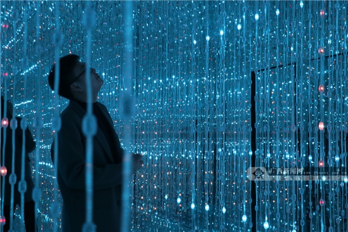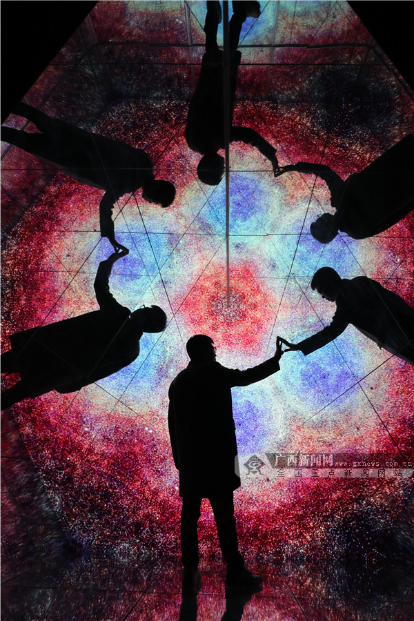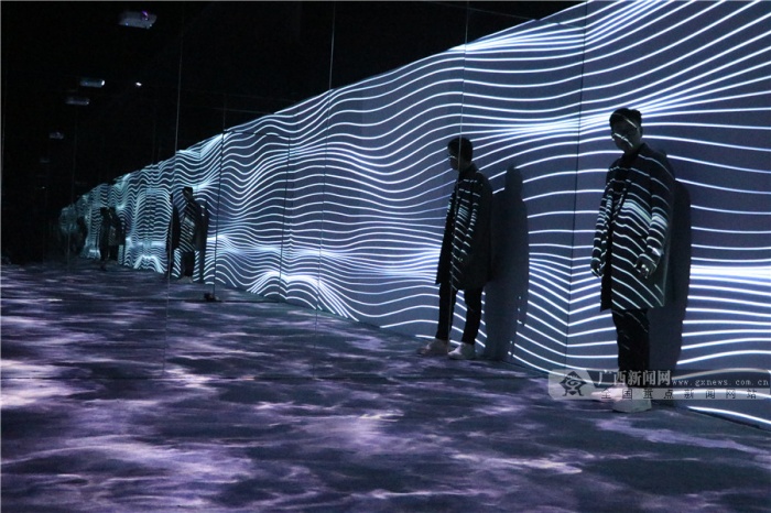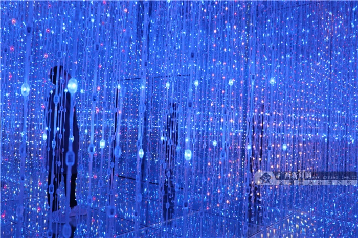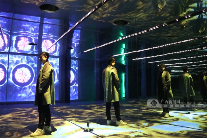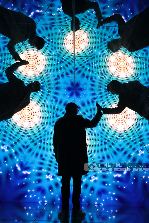 穿梭明镜的隧道,仰望群星点点,置身于星辰大海,聆听自然的声音……2月4日,记者来到展览现场亲身感受光影艺术的无限魅力。该展览策展人纪先生告诉记者:“我办这个展的主题为‘遗忘的星辰’,分为‘遗忘’与‘星辰’两个概念,‘遗忘’是遗忘掉人们现实生活中的烦恼与枷锁,‘星辰’是在忙碌奔波的生活里,也能寻找到内心深处的小宇宙。”纪先生说,整个作品展设置的7个空间都是相关联的,整体上有一个故事线。“通过‘离境之门’开启内心深处的小宇宙,来到‘仰望星空’回顾生活的点滴碎事,进入‘星辰大海’沉下心去思考以往经历的事情是真心所想还是迫于无奈,紧接着进入‘无限之境’,与无数的自己做斗争,随后来到‘空间折叠’这个转折点,去超越挑战无数的自己,进入‘希望国度’后,你会发现内心深处的世外桃源,发现生活中的美好,最后在“起点终站,获得一个崭新的自己。”