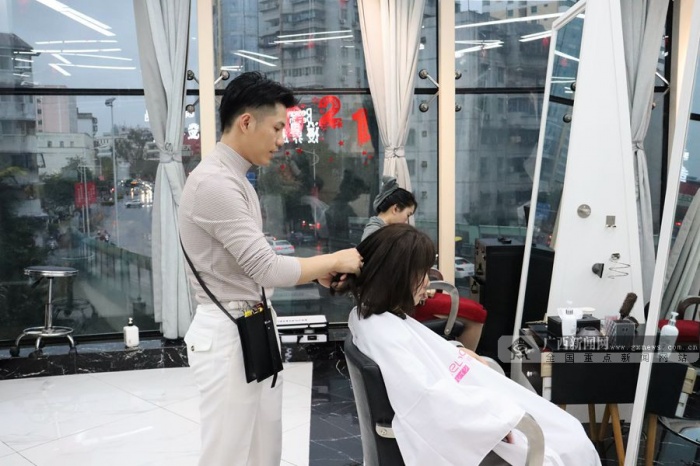 广西新闻网南宁2月9日讯(记者 王飞 实习生 易三钰)春节临近,许多市民选择在春节前到理发店理发,以全新的形象迎接新一年的到来。近日,记者走访南宁多家理发店,发现不少店内都有顾客排队等候,新年新气象,大家都想在年前好好“捯饬”一下自己的头发,而不少理发店生意火爆,有些甚至会出现“一座难求”。