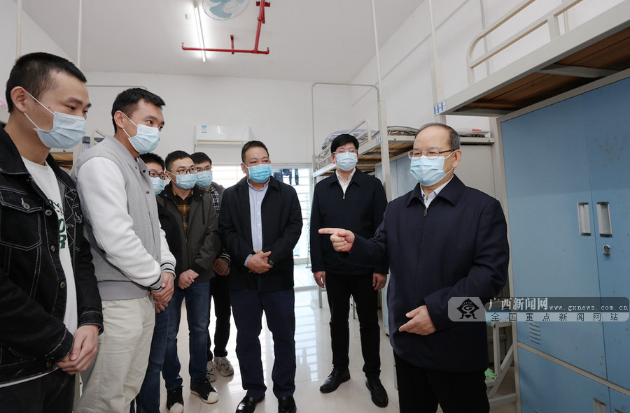 来到广西医科大学,鹿心社走进宿舍楼与就地过年的大学生亲切交流,了解大家的学习生活情况。记者 黄克摄