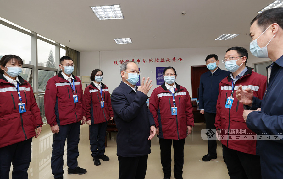 在南宁市疾控中心,鹿心社亲切看望慰问值班值守的疫情防控工作人员,感谢他们为迅速控制疫情、保障人民生命安全所付出的努力。记者 黄克摄