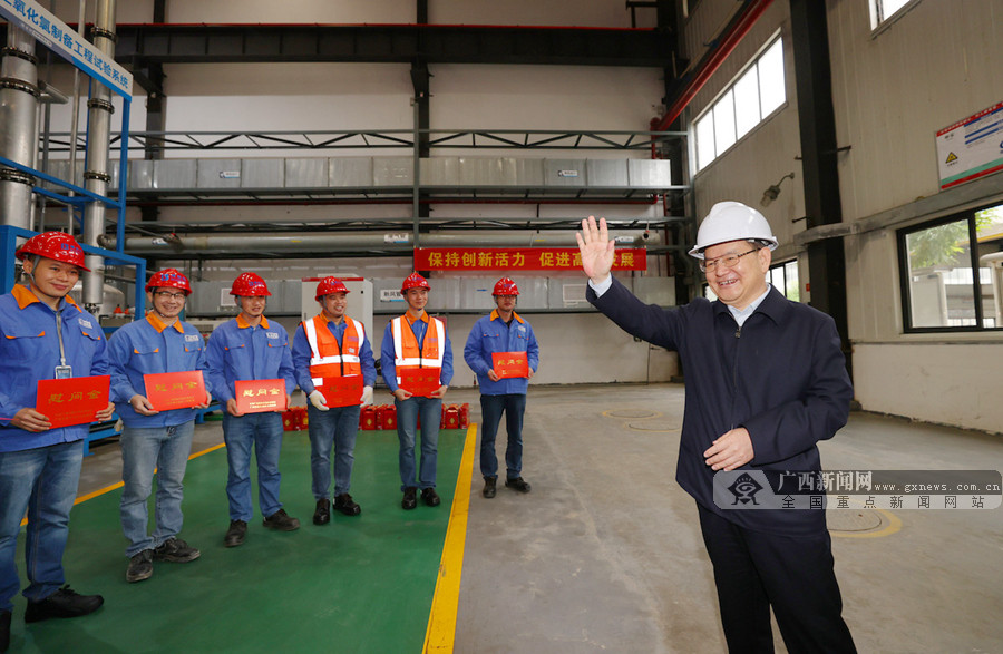 鹿心社走进广西博世科环保科技公司生产车间,详细了解企业创新发展和春节期间安全生产有关情况,看望慰问一线工人。记者 黄克摄