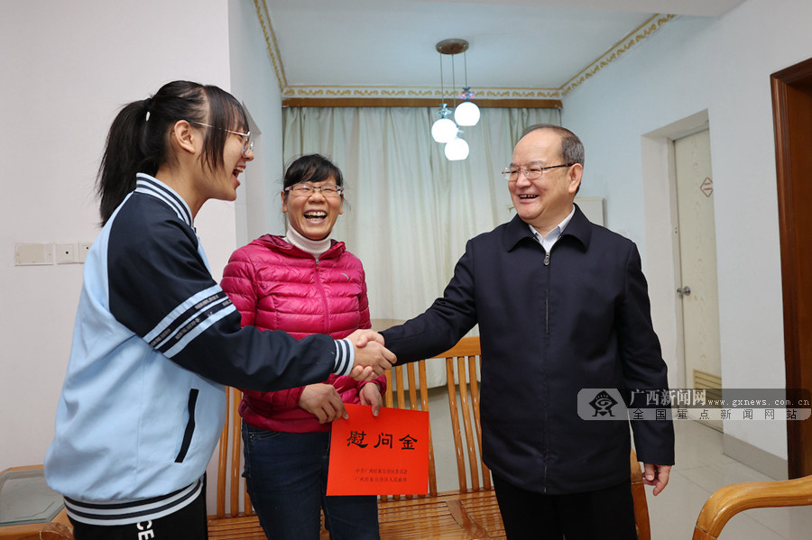 来到广西医科大学,鹿心社走进宿舍楼与就地过年的大学生亲切交流,了解大家的学习生活情况。“年轻真好,广西的发展、国家的未来靠你们。你们正处在最好的年龄段,正是学习干事的好时候,学好本领,大有作为。”鹿心社勉励大家抓住机会努力学习,把基础打得更扎实,将来走向社会,更好地服务国家服务人民,更好地体现自身价值。鹿心社还专门叮嘱大家:“春节在这里过年,不能回家了,记得给家里打个电话、通个视频、报声平安,让家人放心。”